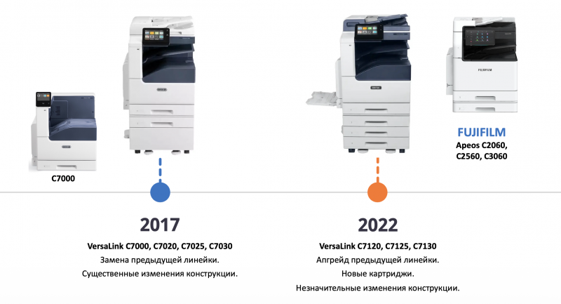 В ноябре состоялся технический вебинар, посвященный цветным принтерам и МФУ Xerox VersaLink формата А3 для малых и средних рабочих групп: VersaLink C7000, C7120, а также Fujifilm Apeos C2060, C2560, C3060. В нашей презентации мы постарались структурировать информацию по отличительным конструктивным особенностям аппаратов, которые «уже в полях», начиная с 2017 по настоящее время, оставили рекомендации по поддержанию работоспособности устройств и рассмотрели о решениях СЕТ®